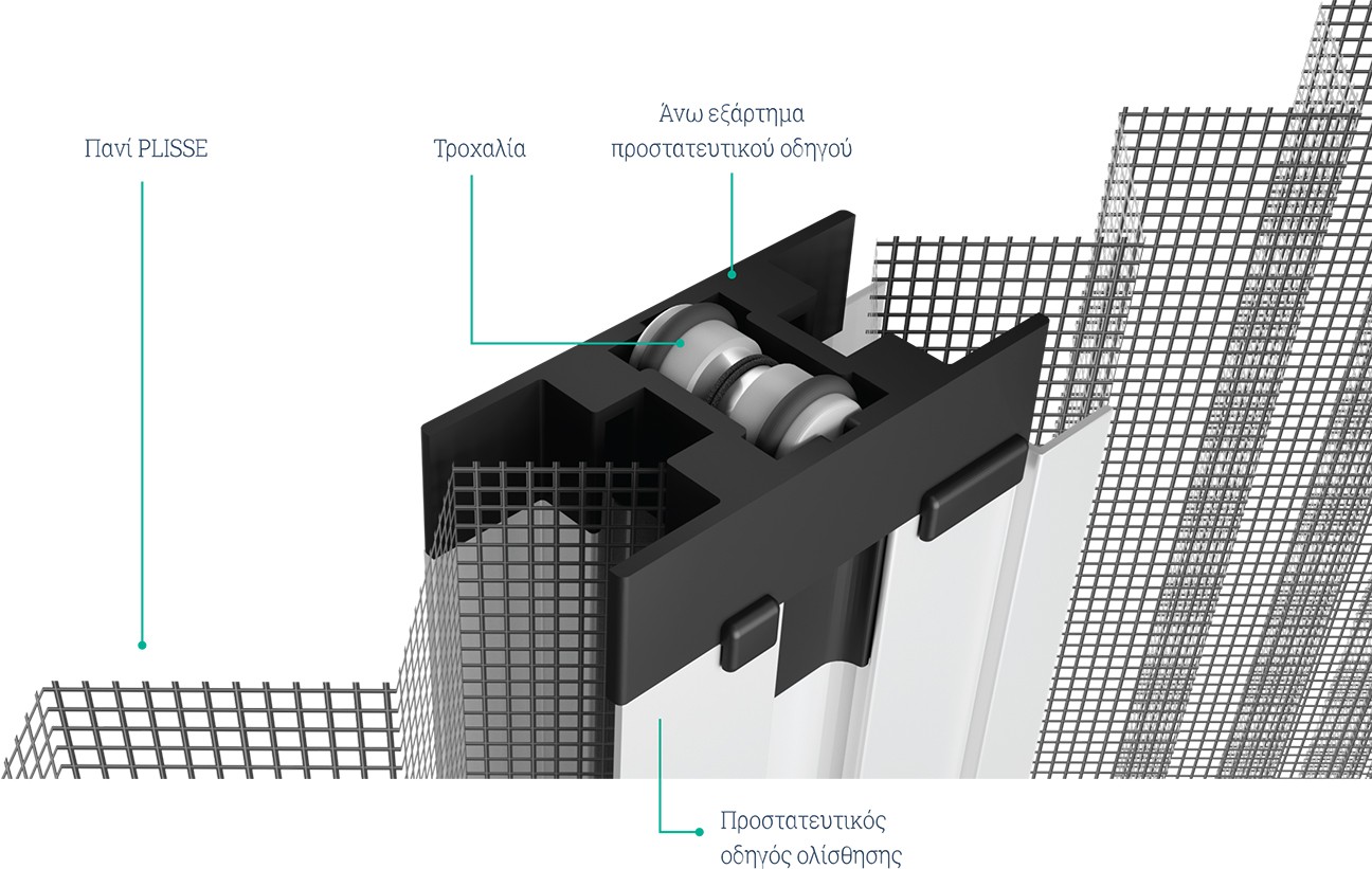 O Προστατευτικός Οδηγός Ολίσθισης, προστατεύει το πλισσέ πανί της royal σίτας από τον άνεμο σε πλάτη μεγαλύτερα από 1.40m και μικρότερα από 5m.