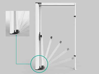 Προσφέρεται η οριζόντια σίτα και με αναδιπλώμενο οδηγό που ευνοεί τον εύκολο καθαρισμό του δαπέδου και τη διέλευση χωρίς την ενοχλητική παρουσία του κάτω οδηγού.